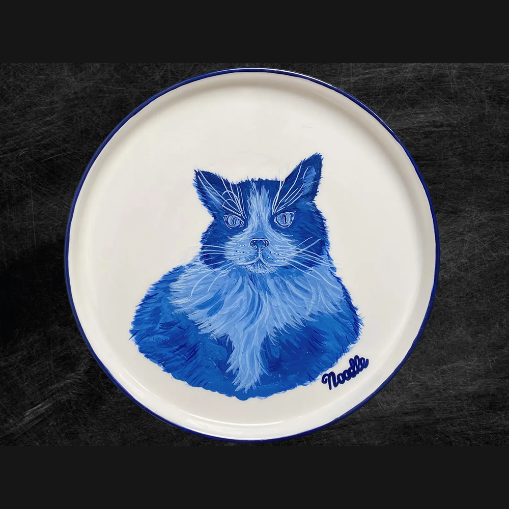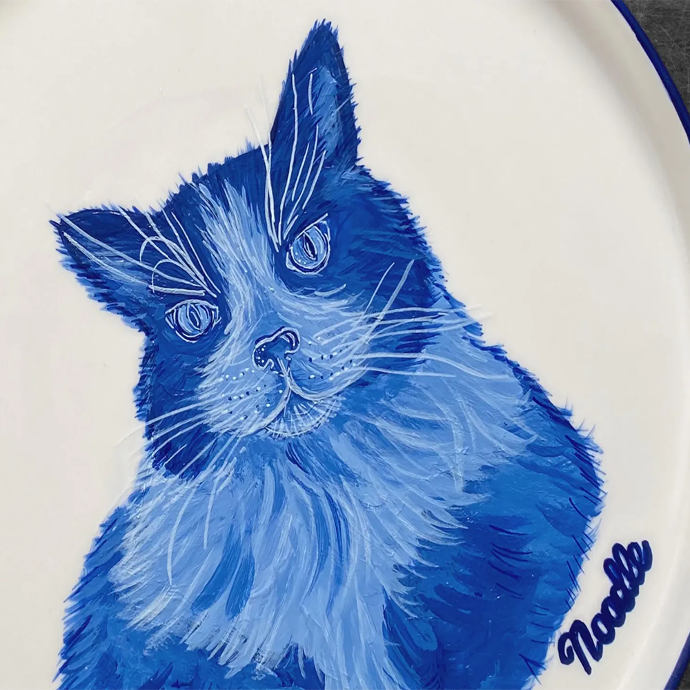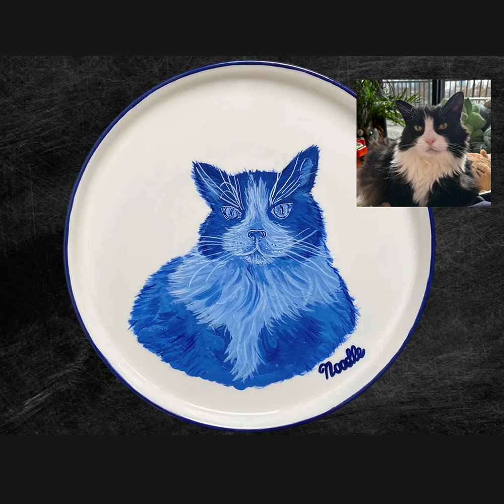 A hand-painted porcelain plate featuring your pet, perfect for a personalized gift.
