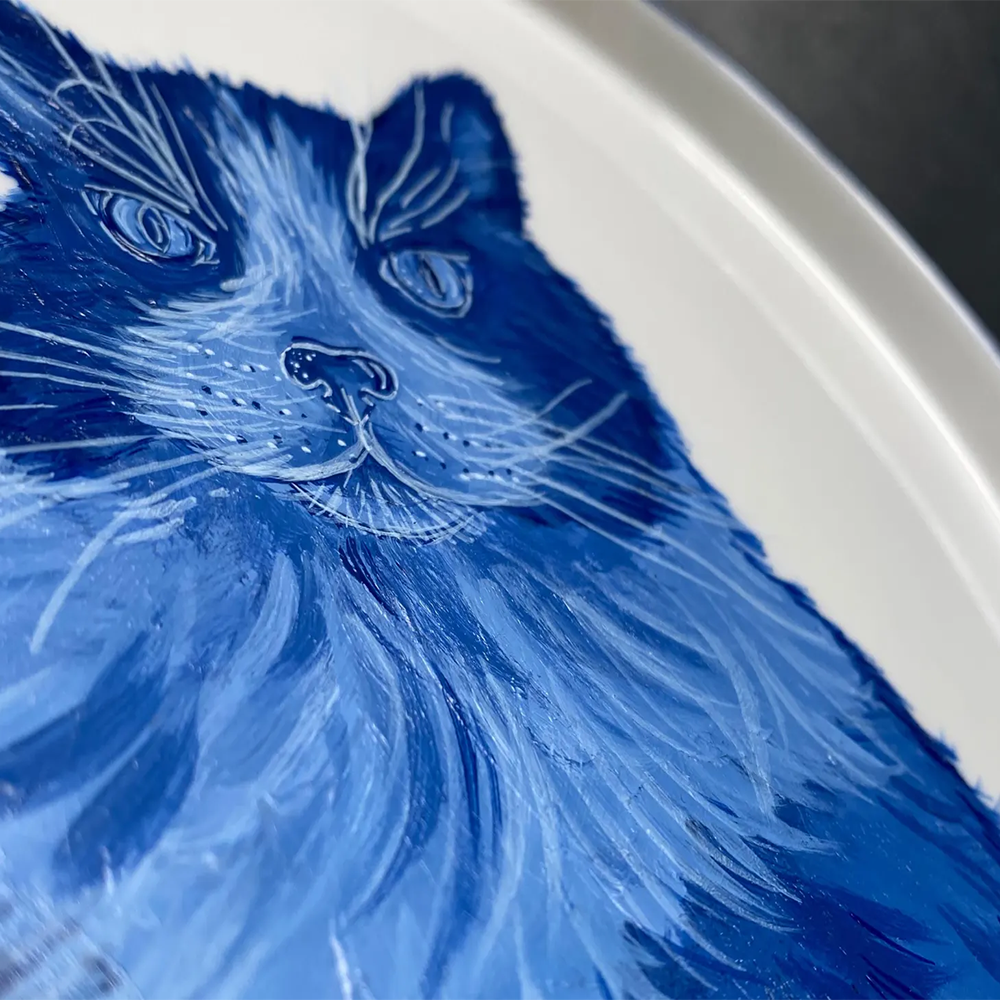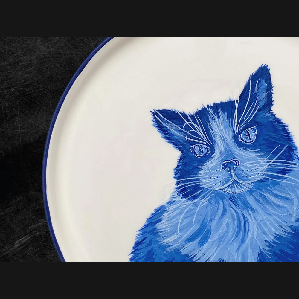 Cat Portrait Plate Blue and White Porcelain